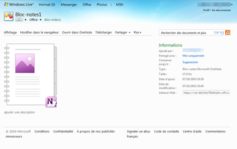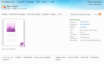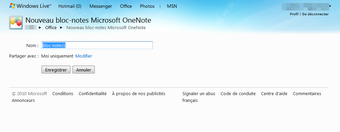 OneNote est un bloc-notes en ligne bourré de fonctionnalités faisant partie de la suite bureautique en ligne Microsoft Office Live. Il s'agit de la déclinaison web de OneNote, version logicielle. Vous avez besoin d'un compte Live ID (gratuit) pour l'utiliser.
